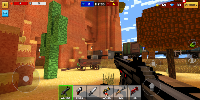 Adding some variety in terms of aesthetics is Pixel Gun 3D. The graphics style of this game is immediately recognizable as inspired by Minecraft, but the shooting aspect of this game is as good as any other on this list. There are enough multiplayer modes to satisfy any FPS fan and the battle royale mode (of course there is one) is surprisingly well fleshed out. Leveling up your character and collecting in-game currency will allow you to unlock more powerful weapons and craft decorations for your base. Those cosmetic elements actually serve a purpose, each adding some benefit during play.