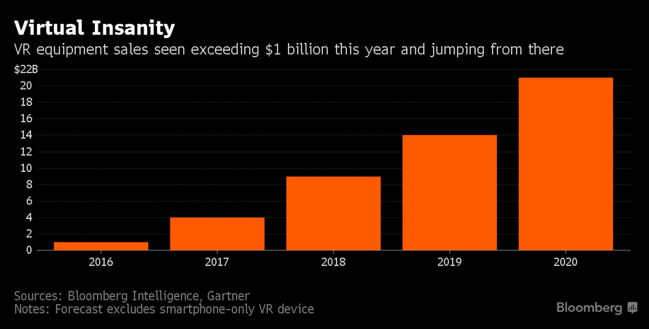 VR equipment revenue will rise from $1 billion this year to $20 billion by 2020 according to Gartner