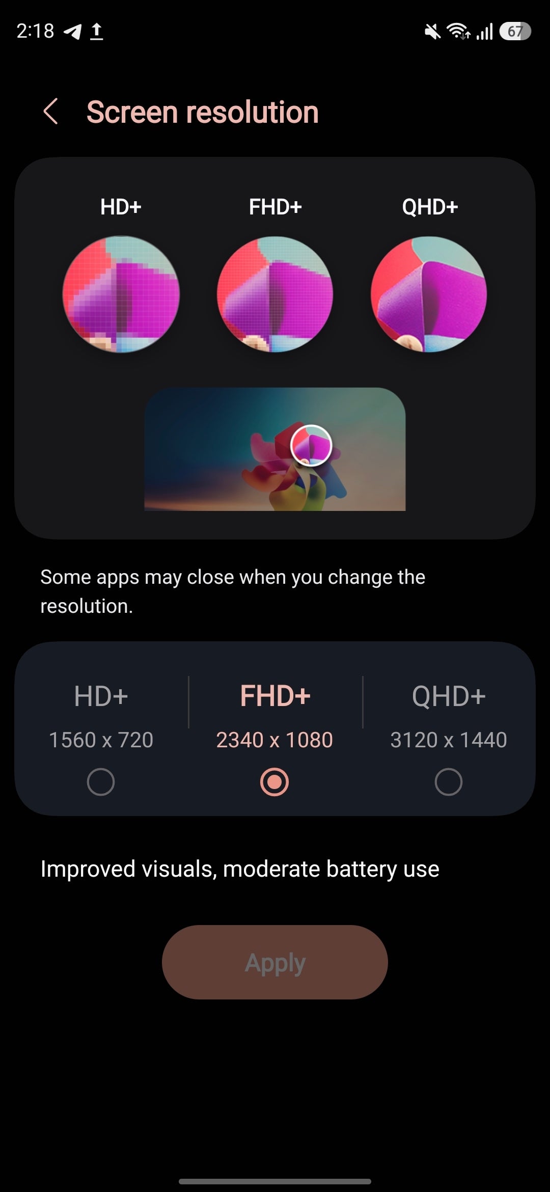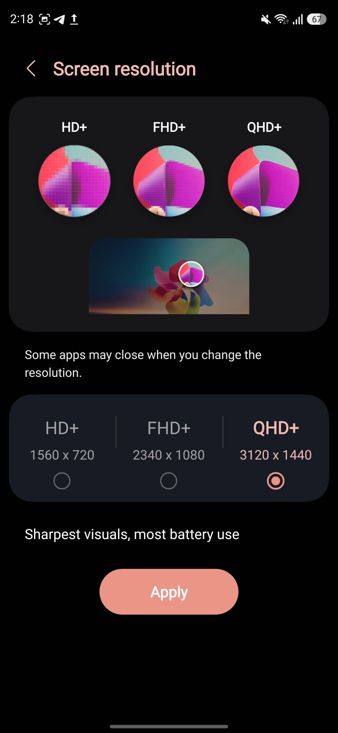 Chances are you don't really need QHD+ resolution to be enabled at all times in your everyday life. Sure, it's the native resolution of both the Galaxy S26 Ultra and the Galaxy S26 Plus and definitely gives the sharpest visuals, but it also takes a heavier toll on your battery. Using FHD+ should be more than enough for most use cases.