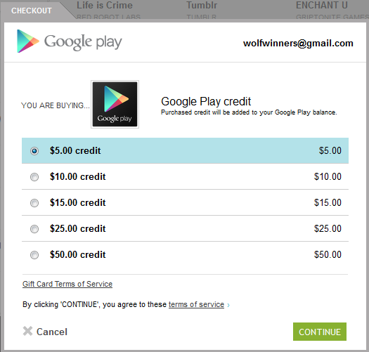 Purchase Google Play credit directly from the website