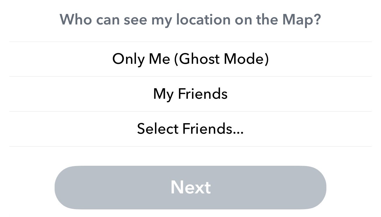 Now, the first time you open Snap Map, you will be asked to specify your privacy preferences. As you might imagine, this is a key step that you shouldn't overlook. You will be given three options...