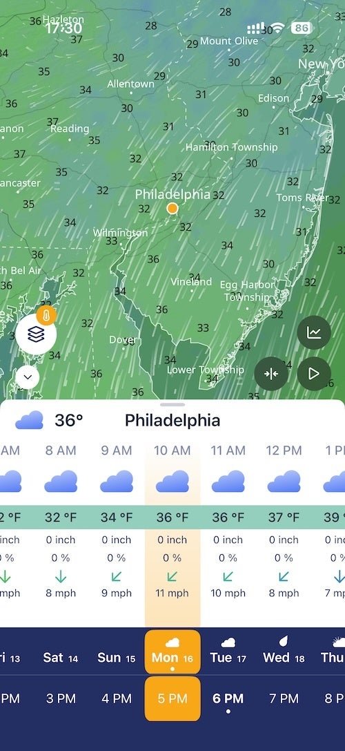 This makes it so easy to star a few cities on the way and quickly look at the weather in those locations, without having to pay for a separate “trip weather planner” app.