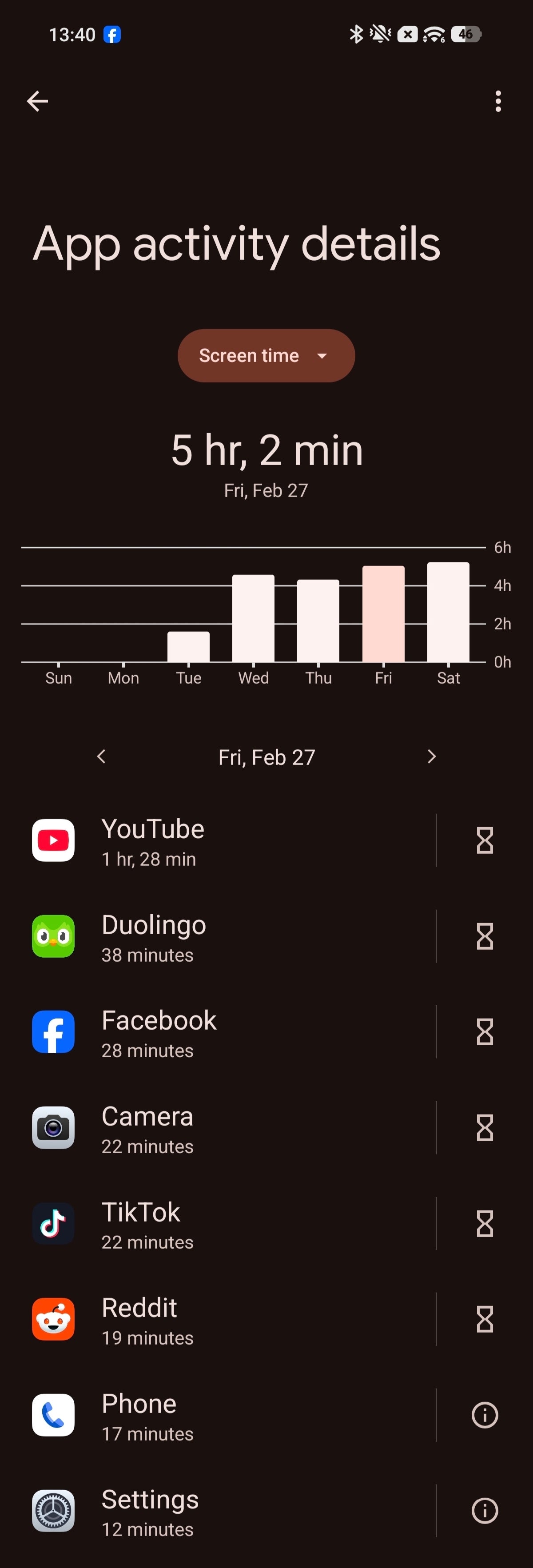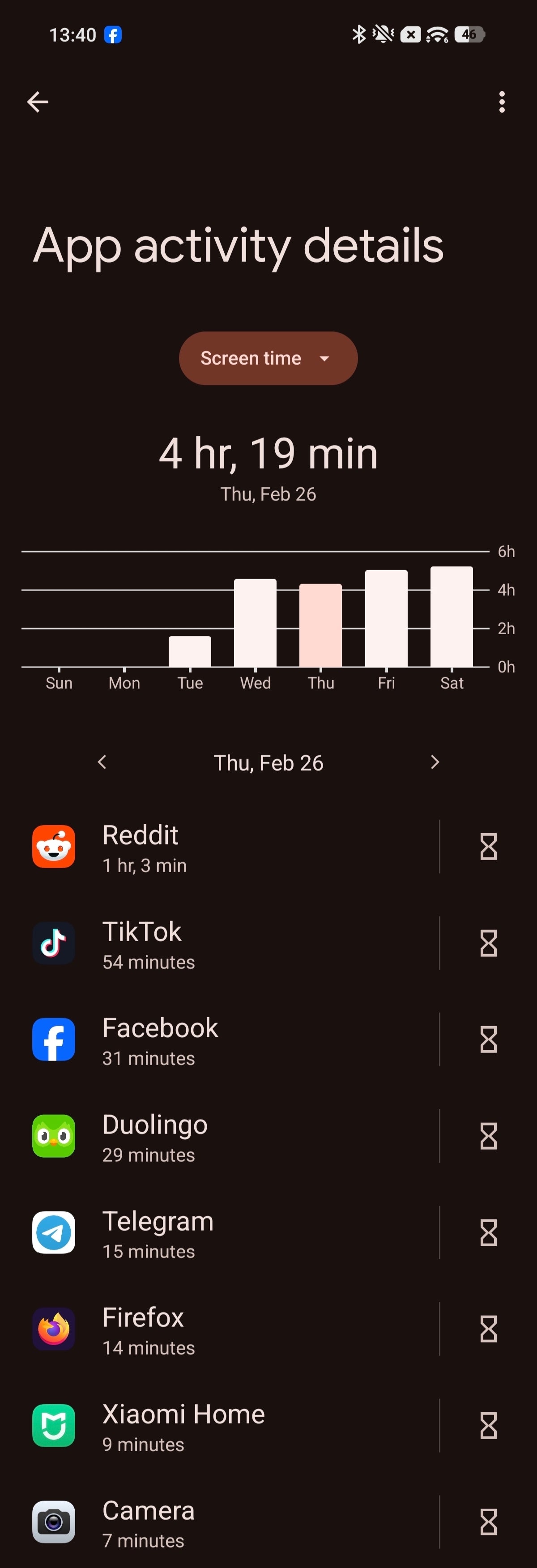 Curious, I didn't remember watching that much YouTube and TikTok on Saturday, but the data says otherwise. Social media truly is addictive, it seems.