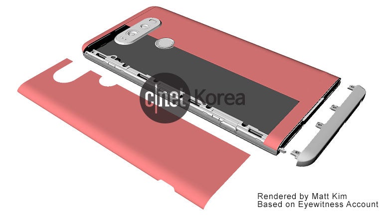 But the story doesn't quite end there. According to a report from c|net Korea, the V20 will include a rather quirky, slide-out compartment on the left side of the device's rear. By the touch of a button on the edge of the device, a door opens to reveal the (presumably removable) battery, along with SIM and microSD slots.