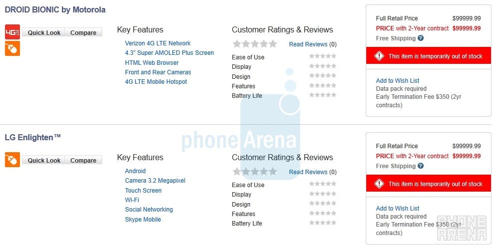 All indications are pointing to a September 8th launch, as this is what is currently showing in Verizon's InfoManager system - which is used by store employees. Today the Verizon web site took a step in the right direction, as the DROID BIONIC is secretly listed on the TestMan site - which often times has a phone listed before it's up on the main site. But don't get your hopes up, as you can't place an order from the TestMan site, nor would you, as it shows a price of $99,999.99. Don't worry, the real 2-year price is expected to be $299.99 after rebate. Since this is simply a "placeholder" page used the Verizon web-design team, none of the specifications for the phone aren't listed yet. In fact, it looks like they are using the template of the Samsung Droid Charge right now. For those of you who haven't been following the evolving DROID BIONIC, it will run on Android 2.3 Gingerbread and will feature a 1GHz dual-core processor, 4.3" qHD display, 8MP autofocus camera with 1080p video, 1735mAh battery, 1GB RAM, 16GB internal memory, and will come with a 16GB microSDHC memory card pre-installed.