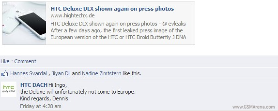 A person interested in buying the HTC Deluxe DLX posted on the Taiwan based manufacturer's German Facebook page, a link to one of the evleaks renders of the device. HTC responded by saying that the beast "will unfortunately not come to Europe." Which then begs the question, where in the world is Carmen Sandiego will the HTC Deluxe DLX hang its coat? Or maybe the 5 incher never goes anywhere else than the U.S. or Japan. In the latter country, the model is known as the HTC J Butterfly, a totally perfect moniker for that market.