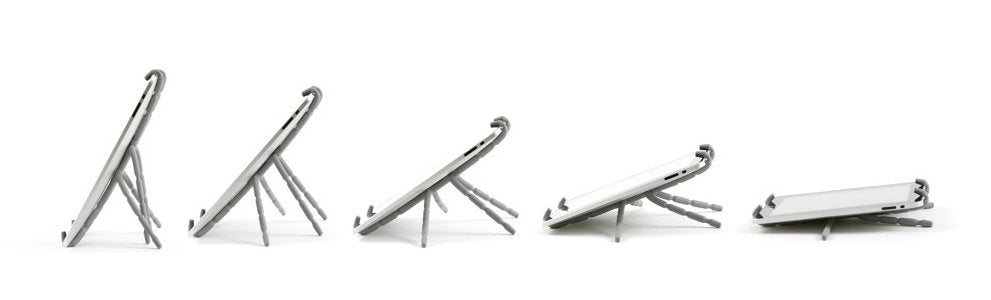 Apart from scaring people with your iPad's weird holder, the Spiderpodium grip is set to give a "secured and assured hold" to your small and medium tablets, including Apple's tablet. When not in use, the spidery grip folds into a pocket sized chunk of plastic. The price is undisclosed, but judging from Breffo's similar handheld grip priced at $19.99, it should not be too much.