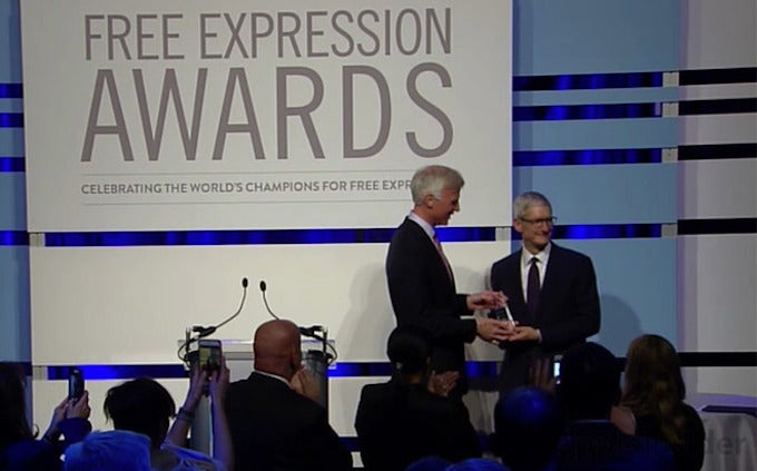 Tim Cook accepts Free Expression Award, makes sly comment on Trump's agenda