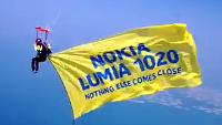 During the skydiving scenes, a flag is unfurled promoting the phone as we see the city beckoning below. It's a great video and was filmed using a Nokia Lumia 1020. It certainly proves how tremendous video capture is on the camera-centric handset. You would expect to see a shaky video and instead, the OIS keeps the picture as steady as can be considering where it is being shot from.