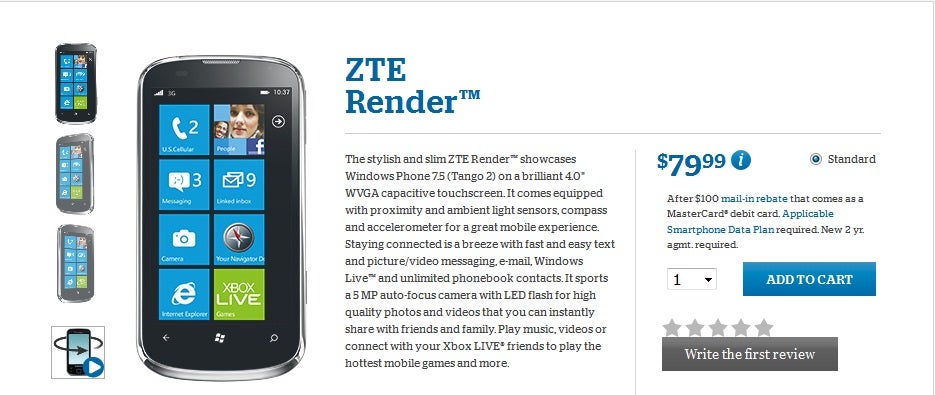The timing seems a bit odd, but here it is, the ZTE Render is available on US Cellular. The Render is also known as the ZTE Orbit, which was announced way back in February.