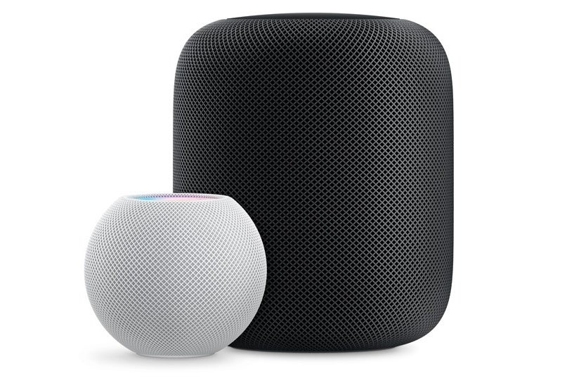 The Apple Homepod mini (left) and Homepod