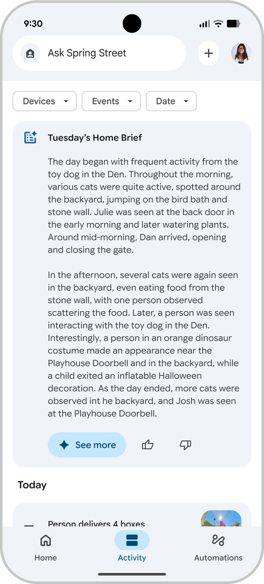 Home Brief: An AI-generated summary of your day's smart home events. (Requires a Google Home Premium subscription)