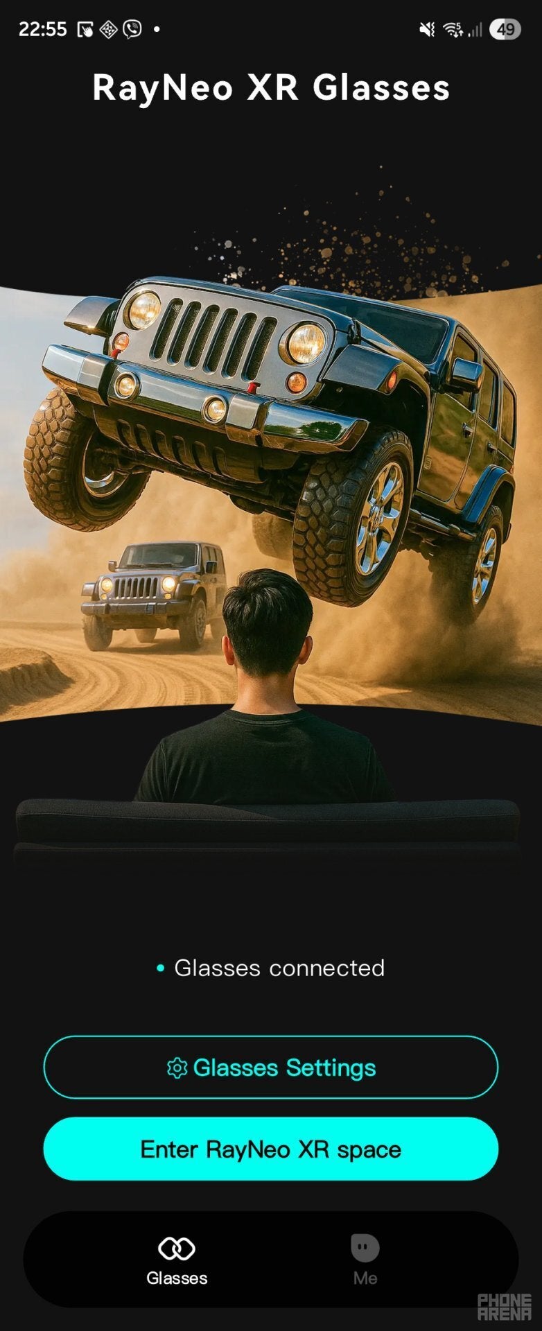 There is an app you can install on your phone to control the Air 3s Pro, but it doesn't do much. You can use it to control the same settings like audio and color that you can already control through the glasses, plus there is an "XR" space where you can play video and view images, with the option to apply a fun 3D effect to the images. It would have been nice if we could use the app to control more advanced things, like screen size.