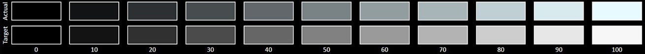 The Grayscale accuracy chart shows whether a display has a correct white balance(balance between red,green and blue)across different levels of grey(from dark to bright).The closer the Actual colors are to the Target ones,the better.