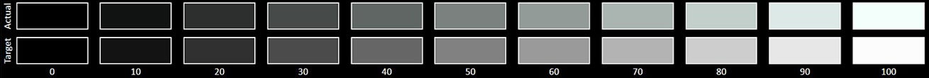 The Grayscale accuracy chart shows whether a display has a correct white balance(balance between red,green and blue)across different levels of grey(from dark to bright).The closer the Actual colors are to the Target ones,the better.