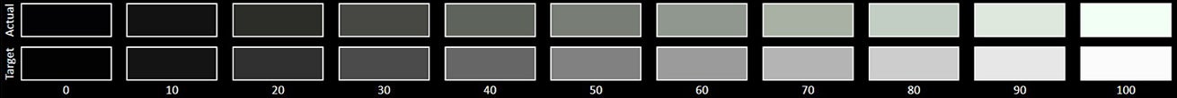 The Grayscale accuracy chart shows whether a display has a correct white balance(balance between red,green and blue)across different levels of grey(from dark to bright).The closer the Actual colors are to the Target ones,the better.