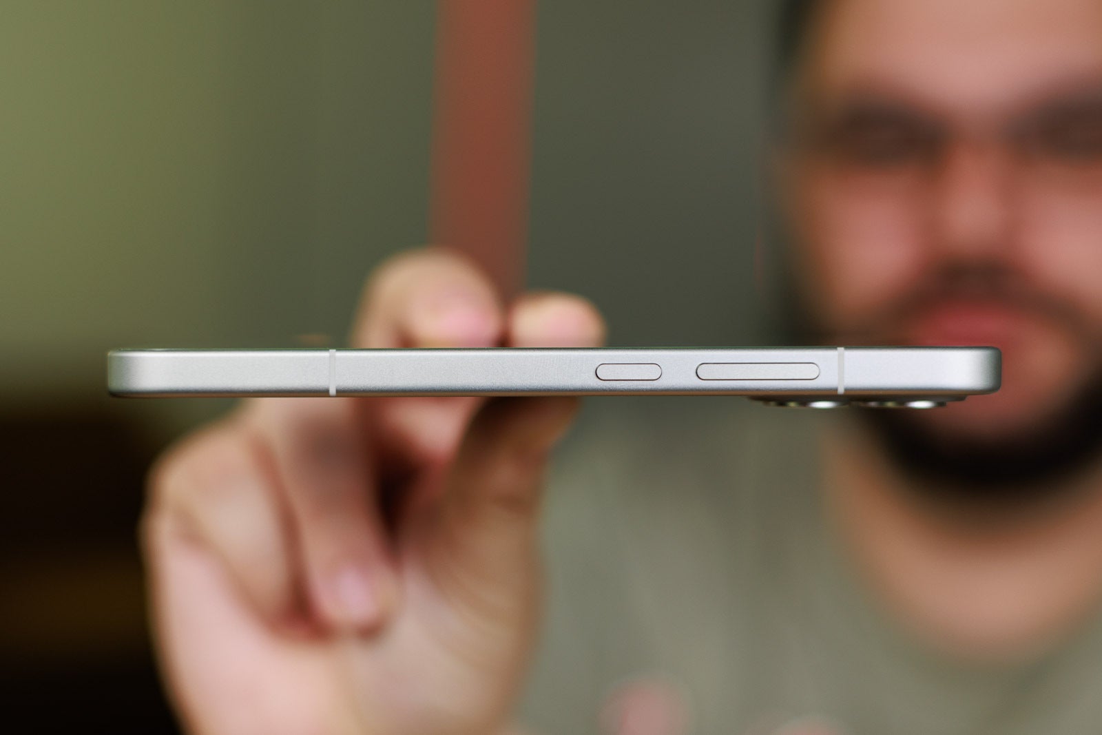 Around the aluminum frame you will find the usual set of buttons—a power button and a volume rocker above it. There's a USB-C port on the bottom, the SIM tray, and the loudspeaker grill. Pretty clean affair.