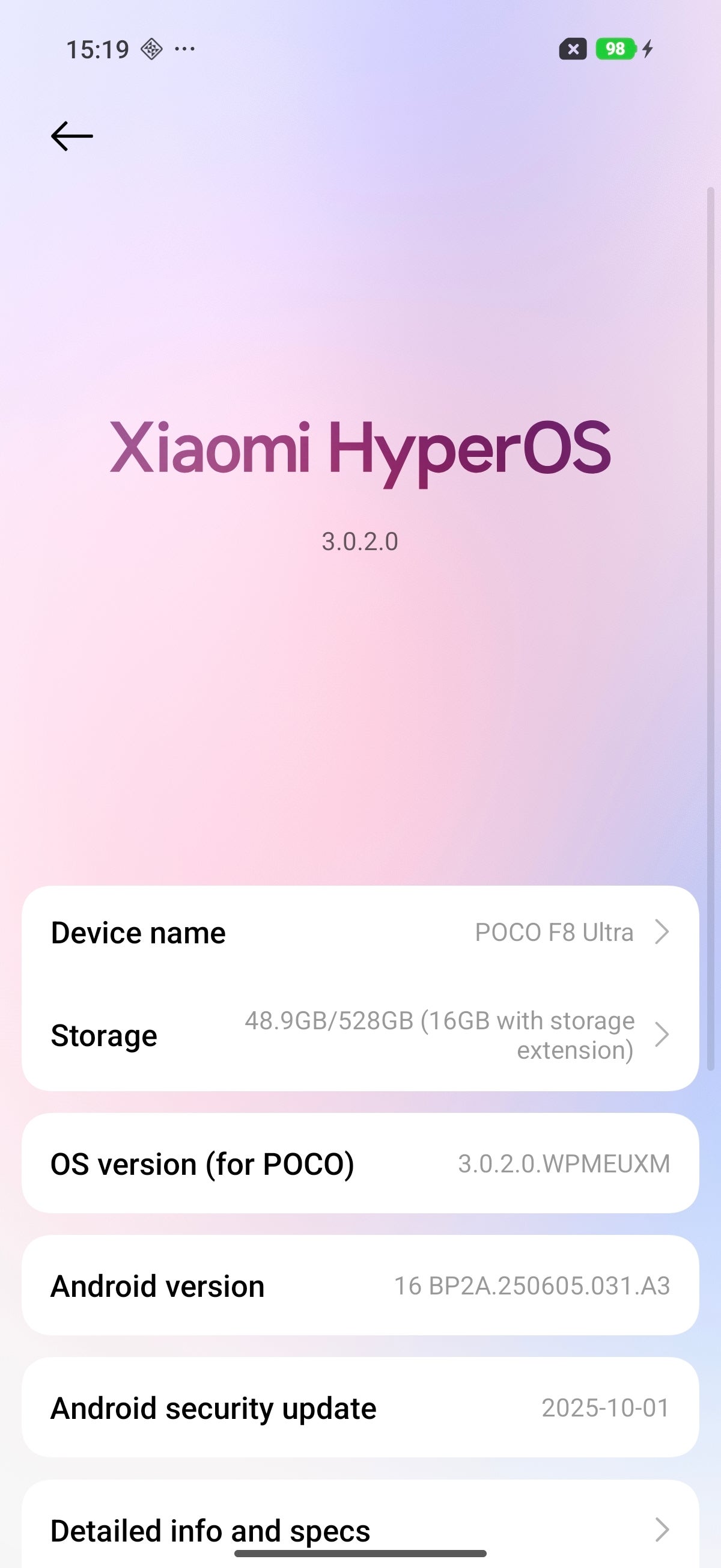 The Poco F8 Ultra runs HyperOS 3 out of the box, based on Android 16. It's the same software you find on Xiaomi flagship phones. HyperOS is a pretty clean UI on top of the Android OS—no bloatware or unnecessary clutter.