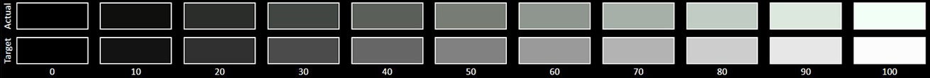 The Grayscale accuracy chart shows whether a display has a correct white balance(balance between red,green and blue)across different levels of grey(from dark to bright).The closer the Actual colors are to the Target ones,the better.